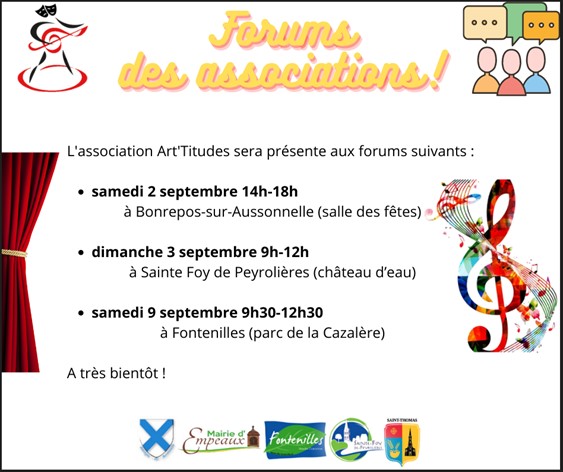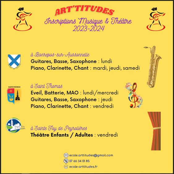 Les cours sont répartis sur 4 communes : Saint-Thomas (Musique), Bonrepos (Musique), Sainte Foy de Peyrolières (Théâtre) et Fontenilles (Théâtre).