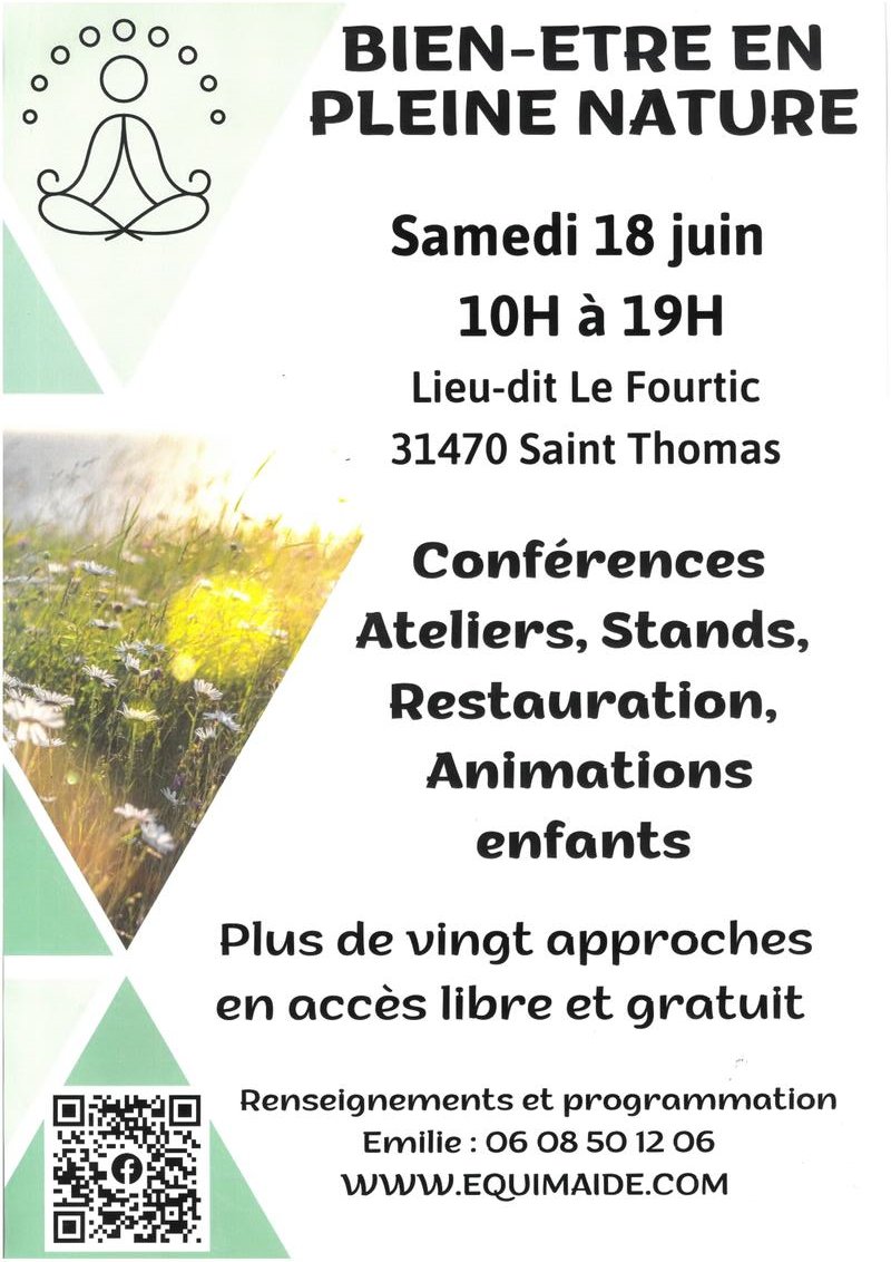L’association EQUIM’AIDE propose une journée intitulée « BIEN ETRE EN PLEINE NATURE ».