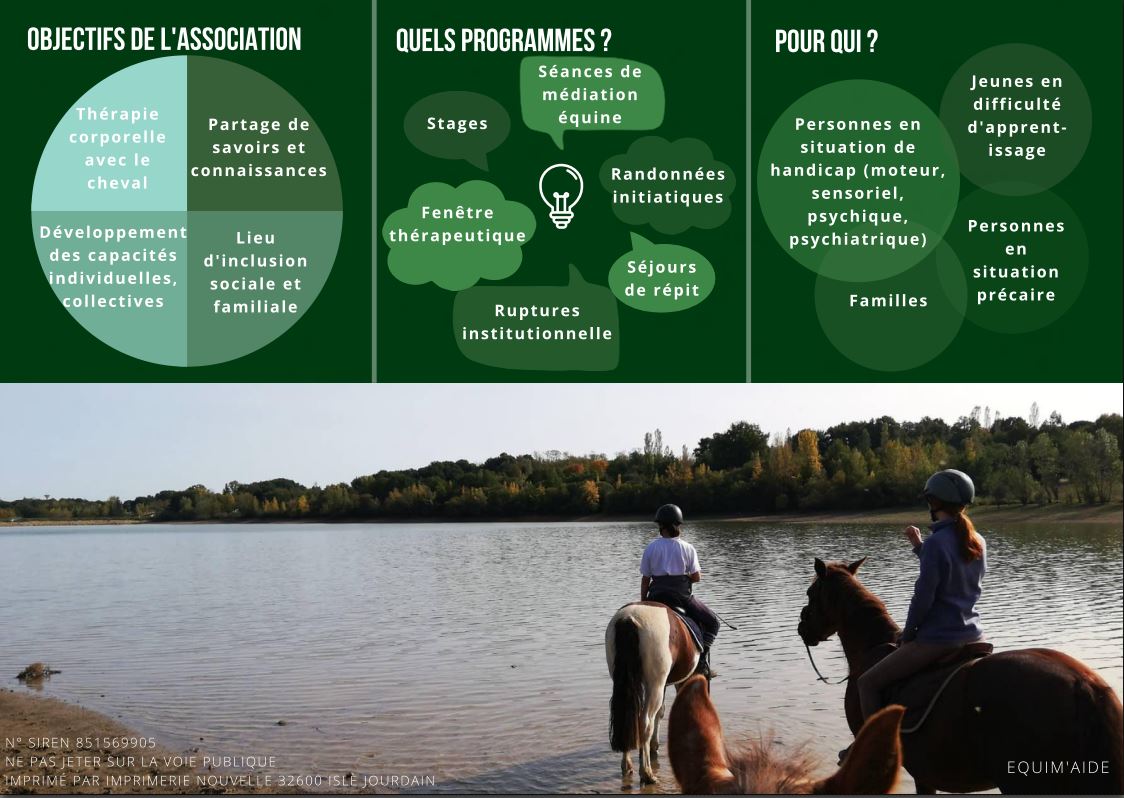 Notre association propose des séances de médiation équine à visée thérapeutique encadrées par des professionnelles, sur un lieu ressourçant en pleine nature.