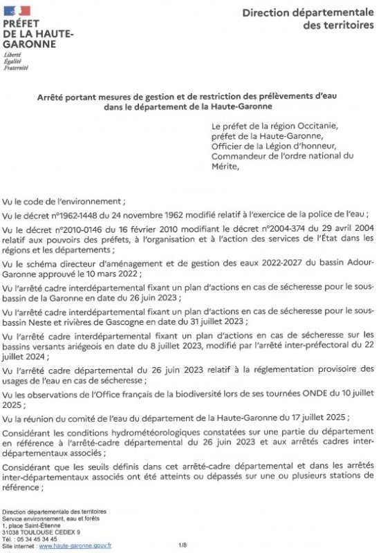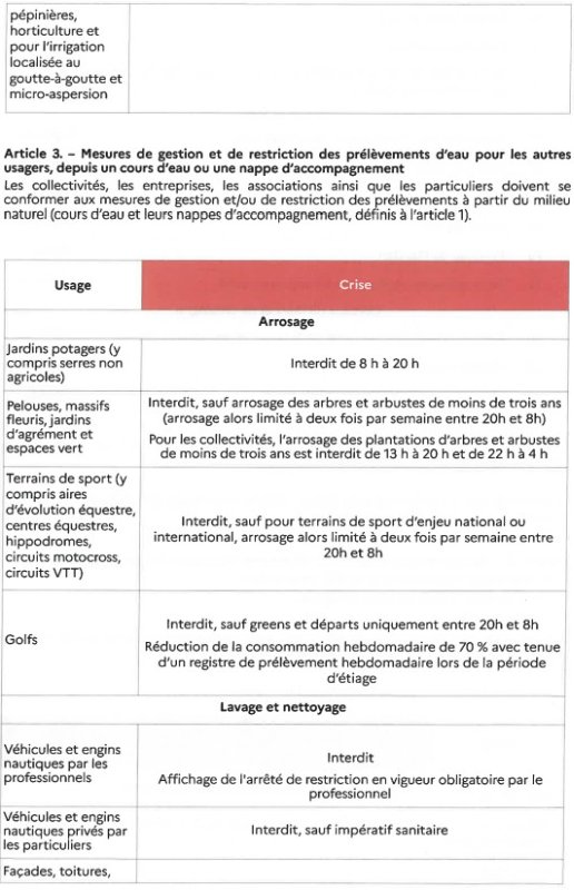 arrêté portant mesures de gestion et de restriction des prélèvements d’eau (PDF - 561.5 kio)